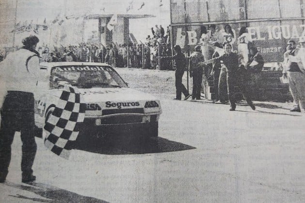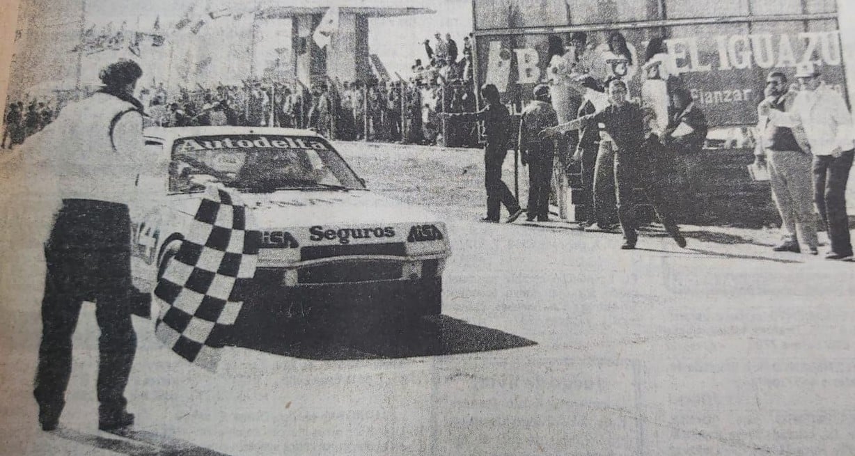 El momento en el que Pancho Costanzo le bajó la bandera a cuadros a Juan María Traverso. Crédito: Archivo El Litoral