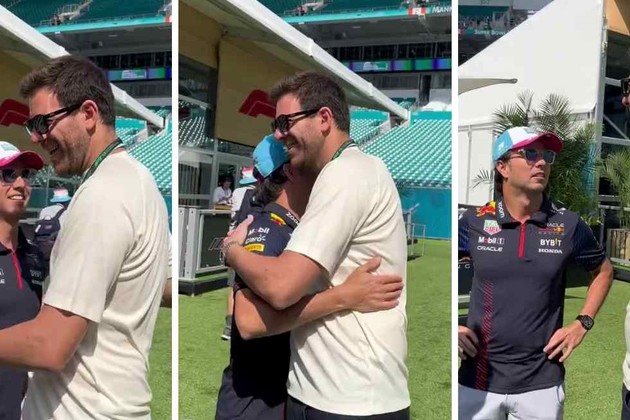 "Delpo" visitó al corredor azteca, ganador el pasado fin de semana en Azerbaiyán, en el box de la escudería Red Bull armado dentro del Hard Rock Stadium, escenario contiguo al circuito donde este domingo se realizará la quinta fecha de la temporada de F1.