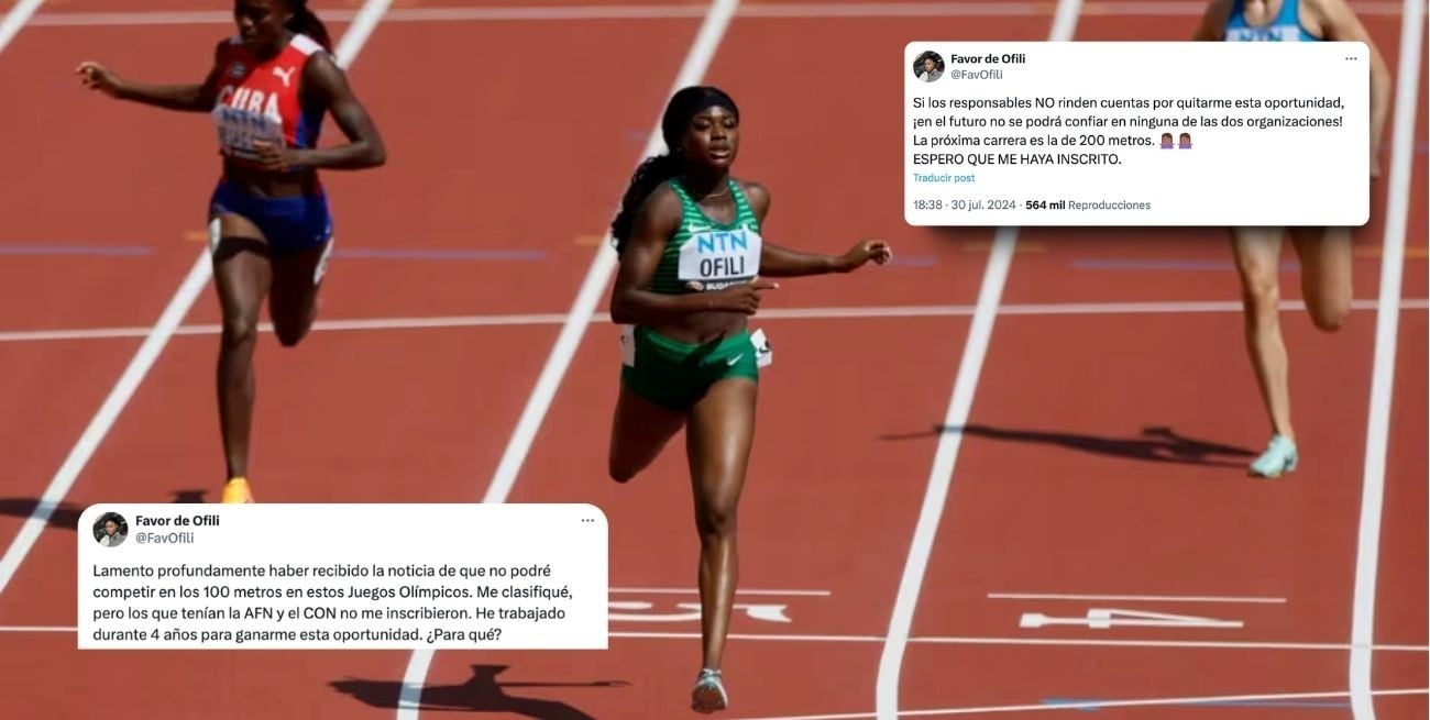 “Es con gran pesar que acabo de ser informada de que no competiré en los 100 metros en estos Juegos Olímpicos. Me clasifiqué, pero la AFN y el NOC no me inscribieron. He trabajado durante 4 años para ganarme esta oportunidad. ¿Para qué?”, manifestó Ofili apuntando contra la Federación de Atletismo de Nigeria y el Comité Olímpico de esa Nación.