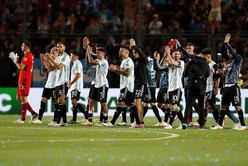 "Hay que saltar, hay que saltar, ya estamos todos para el Mundial", se animaron a corear en el vestuario del Bicentenario de San Juan en broma hacia el entrenador, Lionel Scaloni.