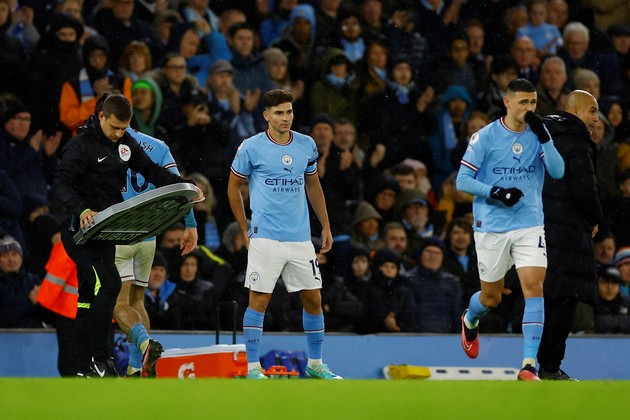 La "Araña" Álvarez, que en la previa al encuentro salió al césped en el Etihad con su medalla de campeón mundial colgada y fue ovacionado por todo el estadio, entró por el portugués Bernardo Silva a los 41 minutos del segundo tiempo.