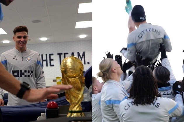 En las canchas de práctica, los jugadores del City alzaron al delantero cordobés, lo lanzaron para arriba varias veces y luego le hicieron la tradicional “manteada” por coronarse campeón del mundo. Entre quienes más lo celebraron estuvieron el noruego Erling Haaland, al inglés Kylie Walker y al turco Ilkay Gundogan.