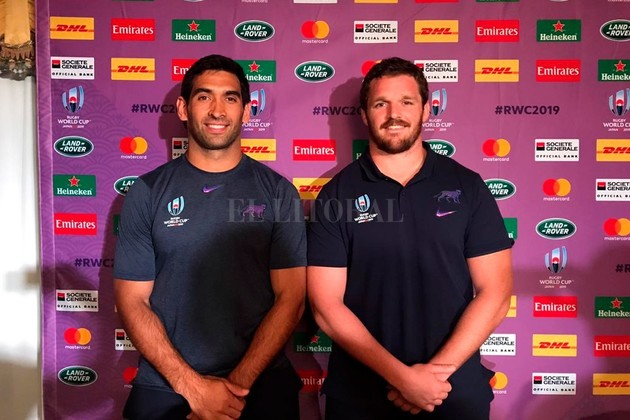 El hooker de Argentina, Julian Montoya (ARG), y el centro Matias Orlando (ARG) realizaron declaraciones este miércoles en el Rihga Royal Hotel, durante atención a la prensa de cara al debut ante Francia el próximo 21 de septiembre en Tokio.