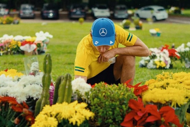 Antonelli visitó la tumba de Ayrton Senna en São Paulo.Antonelli visitó la tumba de Ayrton Senna en São Paulo.