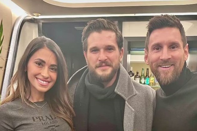 Antonela Roccuzzo, esposa del astro del fútbol, publicó una historia junto a Kit Harington, el intérprete de Jon Snow, uno de los personajes principales de Game of Thrones.