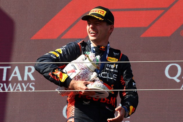 Siguiendo su propia rutina de celebración en el segundo escalón del podio, Norris golpeó su botella de champán contra la zona donde Verstappen había colocado su trofeo de ganador, lo que lamentablemente ocasionó que la pieza del ganador cayera al suelo y se rompiera.