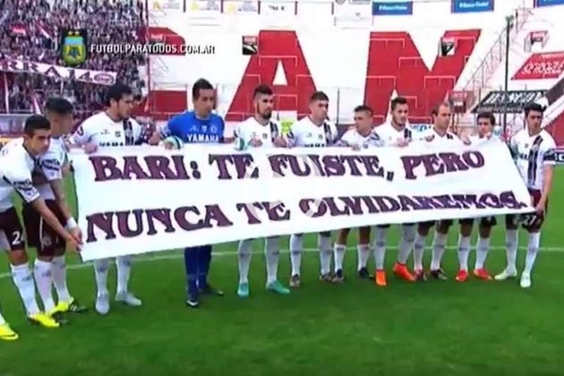 El plantel de Lanús realizó un emotivo homenaje a su compañero Diego Barisone. En el partido correspondiente a la Copa Argentina, los jugadores granates desplegaron una bandera en la previa del inicio del partido.