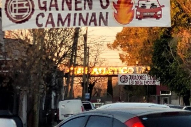 En las adyacencias de "La Fortaleza", aparecieron dos pasacalles, uno de ellos con tono amenazante: "Jugadores: ganen o caminan", fue la leyenda acompañada por la imagen de una llama de fuego y un automóvil.