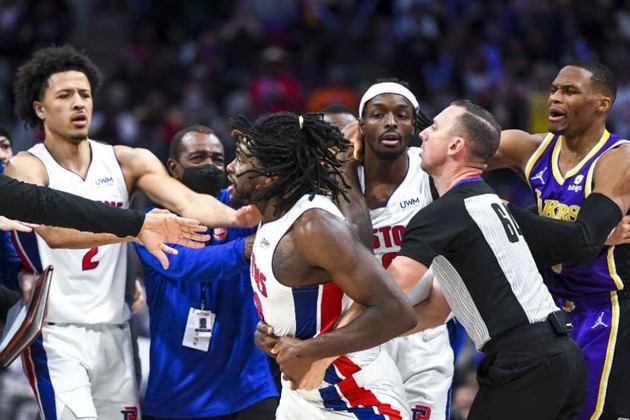 La estrella de Los Ángeles Lakers LeBron James fue expulsado esta noche por golpear al pivote de Detroit Pistons Isaiah Stewart, a quien le produjo un corte en la ceja derecha, lo que provocó un escándalo dentro del campo de juego del Little Caesars Arena.