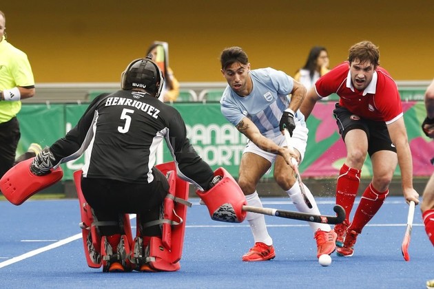 El seleccionado argentino de hockey sobre césped masculino, Los Leones, goleó este martes al representativo chileno por 5 a 1 en el debut del grupo A de los Juegos Panamericanos de Lima, Perú.