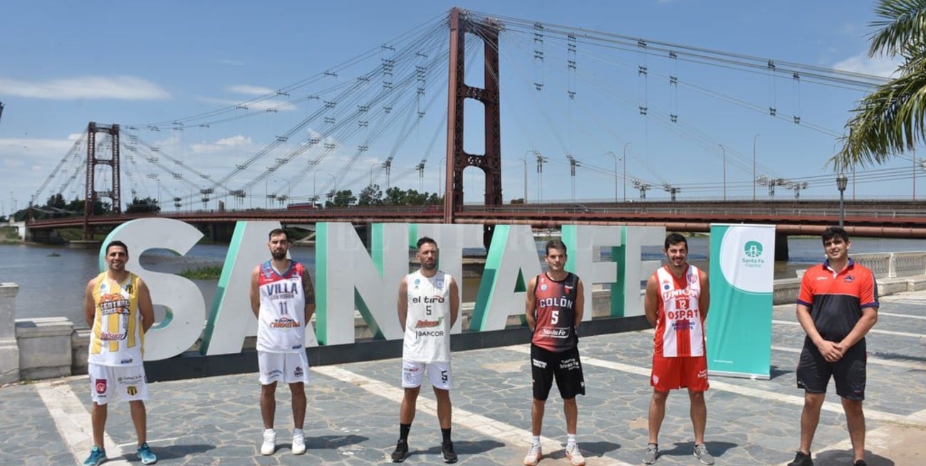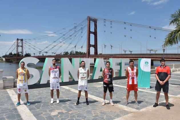 El Puente Colgante fue el escenario de la foto realizada por los capitanes de los equipos que disputan la Liga Argentina en la ciudad de Santa Fe, en conjunto con las autoridades municipales.