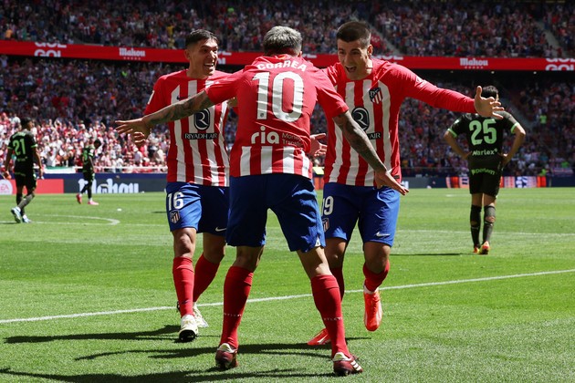 Simeone había cambiado de salida medio equipo y el sistema, llamando la atención casi más lo segundo que lo primero. Porque al fin y al cabo en el once se mantenían pesos pesados como Koke, De Paul o Griezmann, no hay Dortmund que valga, y porque el Atlético suele modificar dibujos y posiciones de los futbolistas en los mismos con el balón ya en juego, pero también venía arrancando una vez tras otra con los tres centrales de marras. Por otra parte, dada la manifiesta inferioridad exhibida. Riquelme fue el encargado de cerrar ahí, antes de que la lesión de Saúl incluyera a Morata en el negocio... retrasando unos metros a Grizi.