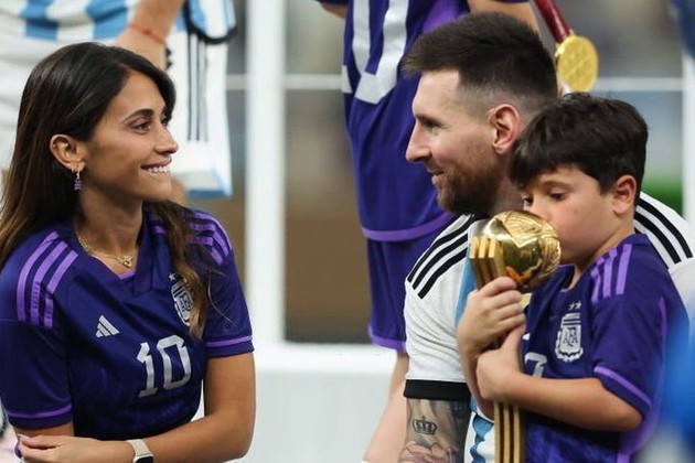 Luego del partido los familiares de los jugadores ingresaron a la cancha y Antonela Roccuzzo junto a sus hijos y su esposo, Lionel Messi se sacaron fotos con la copa y la medalla.
