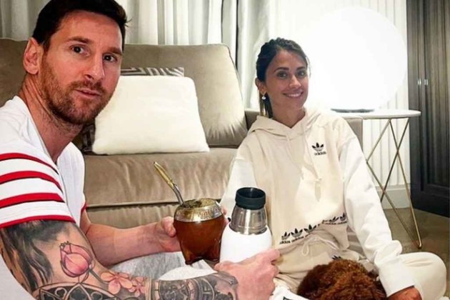 El capitán de la selección posteó en su perfil una foto junto a Antonela, sentado en el piso y tomando mate como de costumbre.