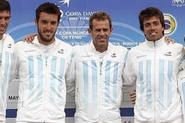 Hay equipo. Los jugadores argentinos y el capitán Orsanic, en la previa de los partidos contra Brasil. El tenis nacional quiere avanzar de fase y no correr riesgos de permanencia en el Grupo Mundial. Foto: Télam