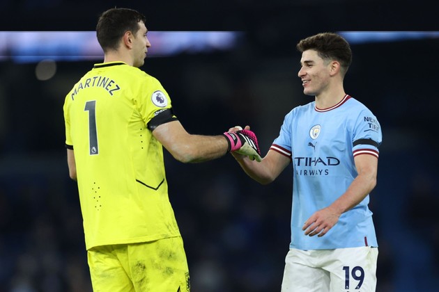 El Manchester City del delantero argentino Julián Álvarez, que ingresó en el segundo tiempo, le ganó este domingo por 3 a 1 al Aston Villa del arquero Emiliano "Dibu" Martínez, y sigue como escolta del Arsenal en la vigésimo tercera fecha de la Premier League de Inglaterra.