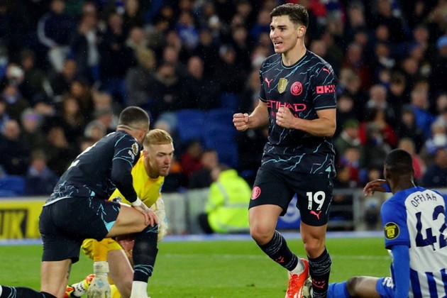 En un duelo pendiente de la fecha 29, Manchester City, con un gol de Julián Álvarez, goleó 4-0 a Brighton para seguir prendido en la cima de la Premier League, campeonato que se supone peleará hasta el final con Arsenal debido al traspié del miércoles de Liverpool contra Everton. Además, en el elenco perdedor jugó por primera vez desde el inicio Valentín Barco y tuvo una jornada para el olvido: participó en 3 de los 4 cuatros goles del conjunto comandado por Pep Guardiola.