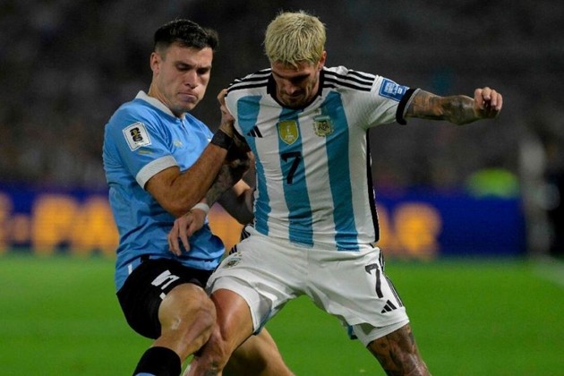 Manuel Ugarte fue protagonista del cruce entre Argentina y Uruguay por un desagradable gesto que le realizó a Rodrigo De Paul y que también enojó a Lionel Messi.