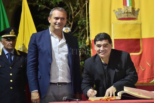 El alcalde Luigi de Magistris fue el encargado de distinguir al extranjero que hizo vibrar como nunca a los tifosi napolitanos, que este miércoles lo honran 33 años después que pisó esta ciudad que mira frente al Tirreno y al que le dio las mayores alegrías al vencer a los grandes equipos del norte.