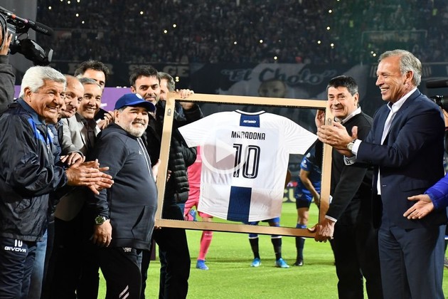 Diego Armando Maradona fue homenajeado este lunes por la noche en el estadio Mario Alberto Kempes con un breve y emotivo reconocimiento que recibió en la previa del encuentro entre Talleres de Córdoba y Gimnasia y Esgrima La Plata.