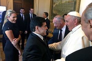 El Papa había recibido a la delegación de futbolistas por la mañana en Ciudad del Vaticano y agradeciéndoles que el fútbol derive en el "bien para la gente" y por "el ejemplo de humanidad" que harán "para el bien de tanta gente"."He querido venir para saludarlos y agradecerles por el trabajo que harán hoy, porque es un deporte pero también es un trabajo. Es un ejemplo de humanidad, de ayuda, y también un trabajo que será para el bien de tanta gente", señaló el Pontífice a los jugadores que, con el "Diez" y su hijo italiano Maradona Jr incluidos.