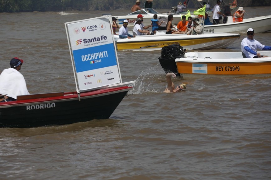 Llegando a las ocho horas de competencia, la Santa Fe-Coronda 2026 define sus liderazgos: el italiano Alessio Occhipinti arrasa en el masculino y la argentina Mayte Puca lidera la rama femenina. Ambos son los ganadores defensores al hacerse de la edición 2025 de la Maratón "más linda del mundo". Por el ritmo de nado que mantienen y la distancia que consolidaron con sus perseguidores, se encaminan a revalidar el título.