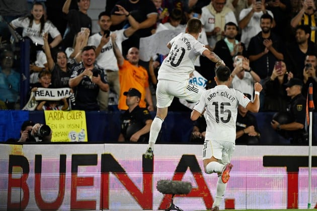 Mastantuono convirtió ante Levante y marcó su primer gol oficial en Real Madrid. Foto: Reuters