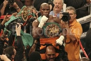 El invicto estadounidense Floyd Mayweather le arrebató la corona welter CMB al mexicano Víctor Ortíz al vencerlo por nocaut en el cuarto round en una pelea que tuvo como escenario el MGM Grand Arena de Las Vegas, y ahora apunta al filipino Manny Pacquiao como próximo objetivo.