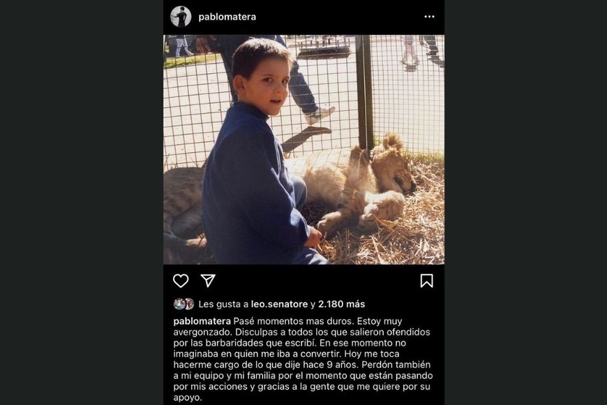 Más temprano, Matera, ala de 27 años, primero cerró su cuenta de Twitter y luego pidió disculpas públicamente "a todos los que salieron ofendidos por las barbaridades" que escribió.