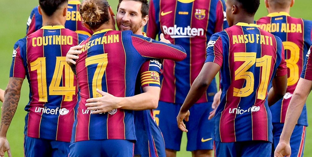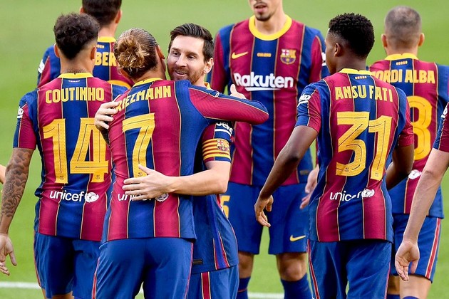 Barcelona formó con Neto; Sergi Roberto, Piqué, Lenglet, Alba; Busquets (Pjanic), De Jong; Griezmann (Trincao), Coutinho (Pedri), Ansu Fati (Dembélé); y Messi.