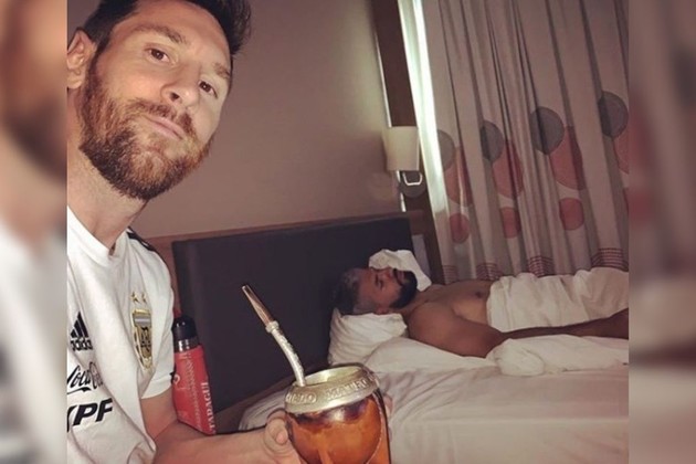 "Tomando mates con mi compañero de pieza @10aguerosergiokun", escribió en Instagram, en donde tiene 121 millones de seguidores.