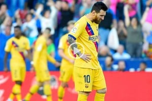 Lionel Messi marcó hoy un gol de penal en la derrota del líder Barcelona contra Levante por 3 a 1 como visitante, en un encuentro de la duodécima fecha de la liga de España.