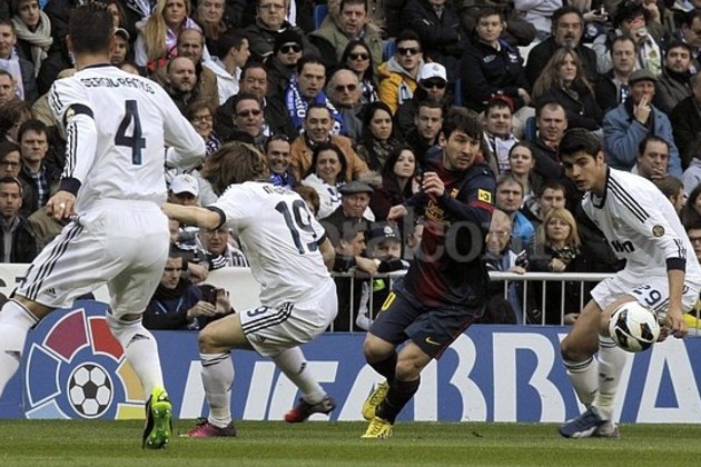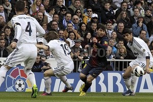 El crack Lionel Messi igualó hoy el récord de 18 goles de Alfredo Di Stéfano en el clásico español, pero no alcanzó para salvar a Barcelona de la derrota 2-1 ante Real Madrid, como visitante, en el partido correspondiente a la 26ta. fecha de la Liga.