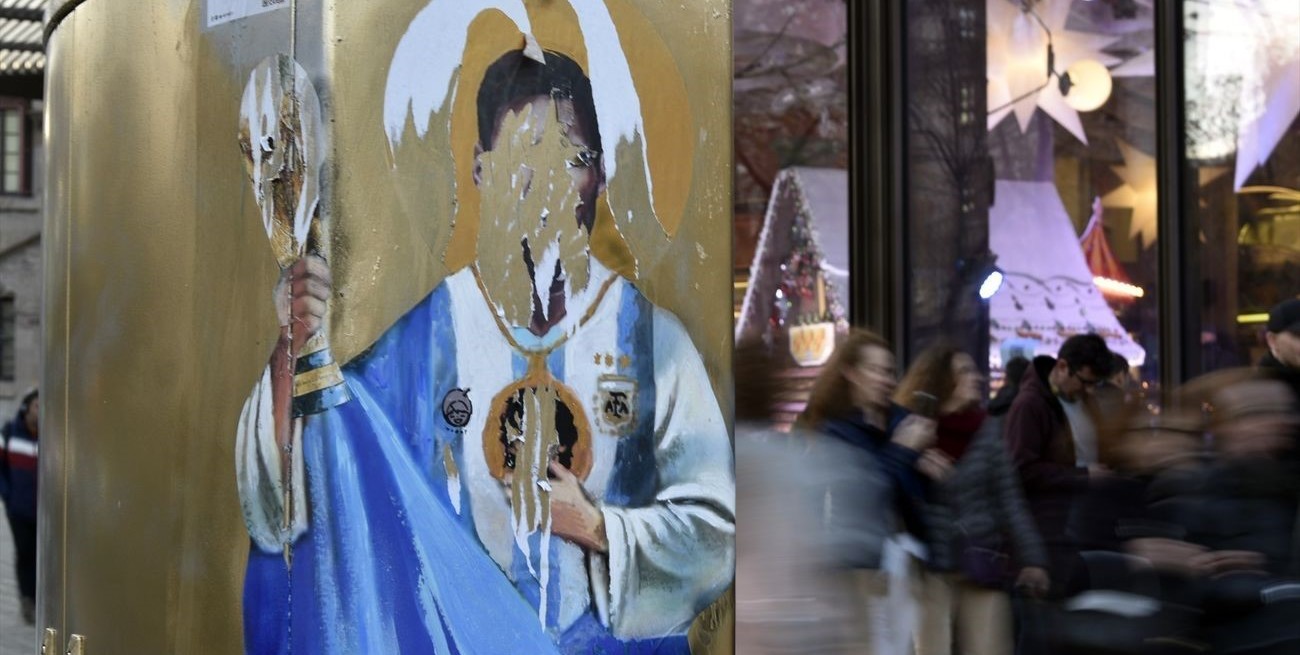 En la obra el pintor incluyó el rostro de Diego Armando Maradona, campeón del mundo en México 1986, en una medalla en el pecho de Messi que también resultó dañada.