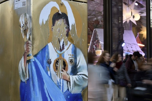 Un mural de Lionel Messi posando con la Copa obtenida en el reciente Mundial de Qatar 2022 y vestido como un santo, obra del artista urbano Tvboy en la avenida Diagonal de Barcelona, España, apareció este viernes vandalizado.