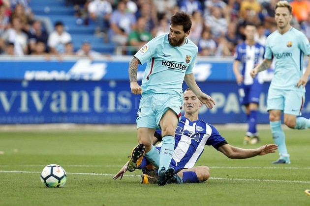 El astro argentino Lionel Messi marcó hoy dos goles y arribó a los 351 en la Liga de España en la victoria de su equipo, Barcelona, sobre Alavés, dirigido por Luis Zubeldía, por 2-0 como visitante, en el marco de la segunda fecha.
