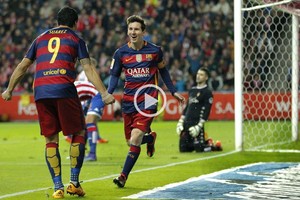 Los alcanzó en el triunfo ante el Sporting Gijón por 3-1 como visitante por el postergado de la 16ta. fecha. Además, anotó el gol n° 10 mil de la historia del Barcelona.