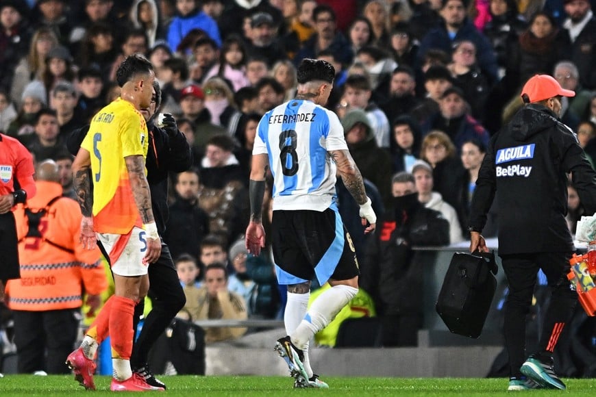 Enzo Fernández fue expulsado a los 25’ por una patada a la cabeza. Foto: Reuters
