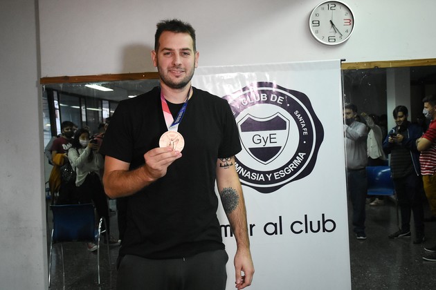 Este viernes 26 de julio de 2024 se meterá en la galería VIP del deporte argentino para siempre: por primera vez un jugador de vóley hará flamear la bandera argentina en un Juego Olímpico. Desde el Sena en París hasta 4 de Enero y Juan de Garay hay miles de kilómetros que lo alejan. Pero ahí, en su única y verdadera casa, la mente y el cuerpo siguen muy sanos. Hace años, el club puso la historia en su lugar. Para ser más concreto, el 8 de julio de 2017 "la Comisión Directiva de Gimnasia y Esgrima llevó adelante la ceremonia de agasajo y mención honoraria a tres de los deportistas mensanas más destacados de las últimas décadas: Conrado Porta, Gabriel Darrás y Luciano De Cecco. Lo hizo en la sede social del club y en una cena rodeado de amigos del básquet, natación y vóley. Conrado, Gabriel y Luciano recibieron una plaqueta de Nuestra Institución y el carnet correspondiente que los declara Socios Honorarios".