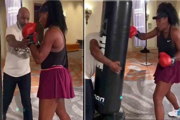 Tyson tomó el papel de entrenador y, después de explicarle algunos movimientos básicos como el “jab” y el “directo”, se dispuso a agarrar el costal por detrás para que la ex número 1 del mundo en el ranking WTA descargue su potencia.