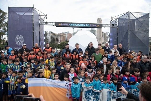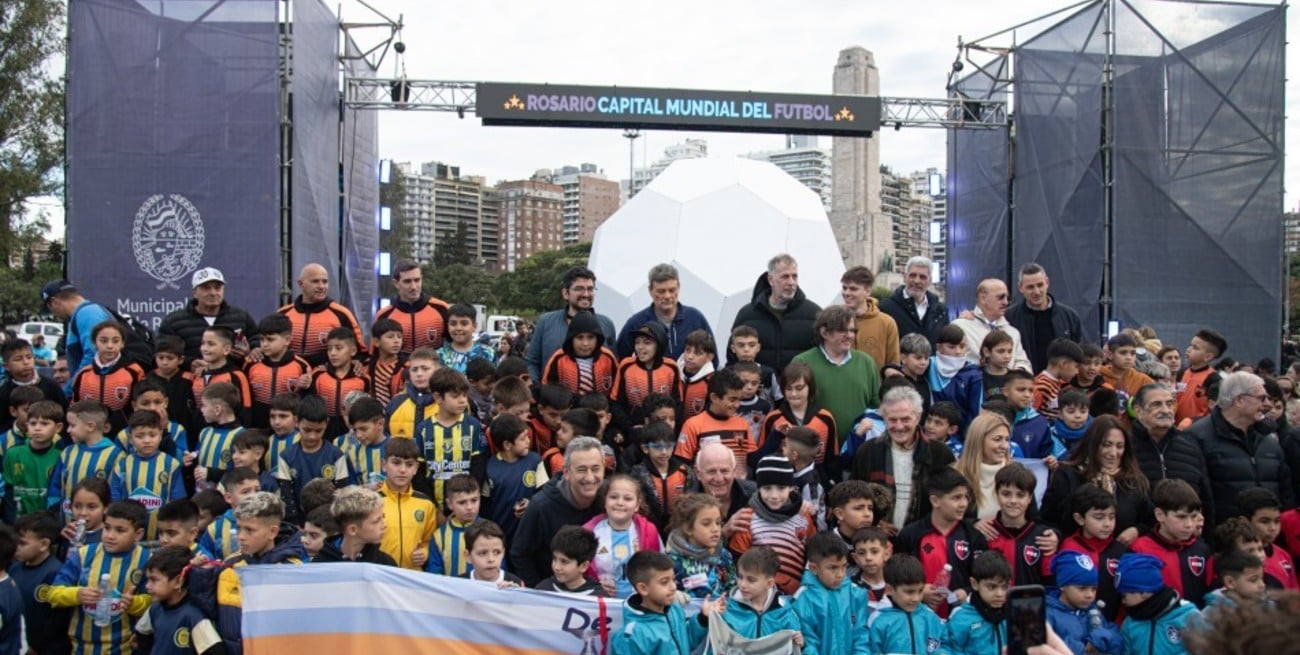 El intendente Pablo Javkin inauguró este domingo 23 de junio el Monumento a Mundialistas «Rosario Capital Mundial del Fútbol», una instalación que recrea la forma de una pelota y que recuerda y homenajea a cada uno de los y las futbolistas de origen rosarino, surgidos de las divisiones inferiores de clubes de Rosario o que jugaron en equipos de la ciudad y actuaron en alguno de los campeonatos mundiales desarrollados desde 1958 hasta la actualidad.
