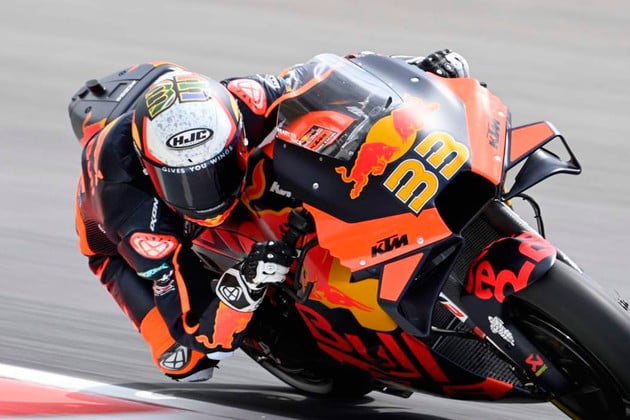 El piloto sudafricano Brad Binder a bordo de KTM se quedó este viernes con el mejor tiempo en el primer ensayo que se realizó en el autódromo de Jerez de la Frontera, escenario del Gran Premio de España en el marco de la cuarta fecha de la temporada del Mundial del MotoGP.