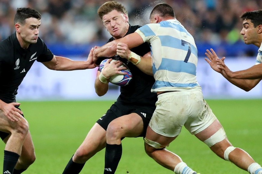 El entrerriano lleva 74 tackes en Francia 2023. Está cerca de la marca hecha por Taulupe Faletau (83) para Gales en Nueva Zelanda 2011.
