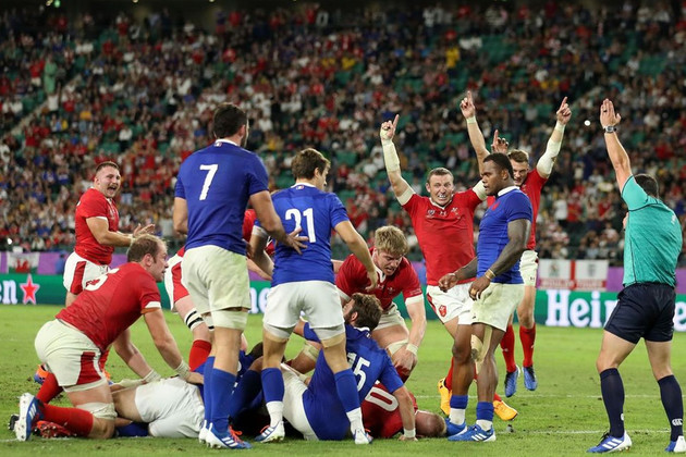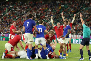 El desenlance del encuentro disputado en Oita estuvo condicionado -quizás en gran medida- por una expulsión: la del lock francés Sebastien Vahaamahina, quien recibió la tarjeta roja por una agresión al galés Wainwaraight, cuando su equipo se imponía por 19 a 10 y en un maul que parecía direccionarse hacia el ingoal adversario.