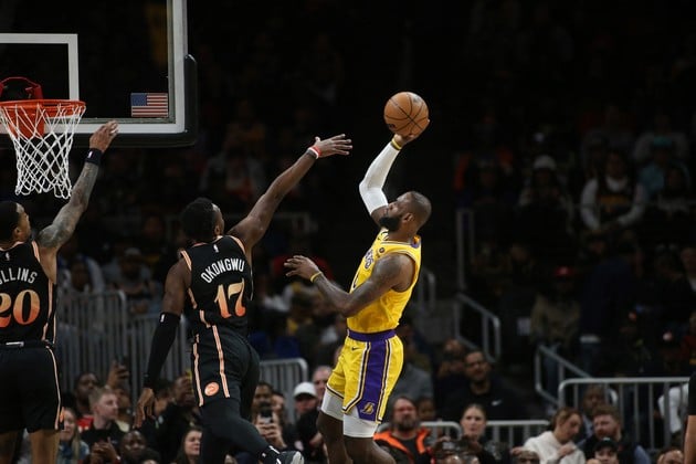 LeBron James brilló en la noche del viernes, en el festejo de su cumpleaños número 38, y guió a Los Angeles Lakers a la victoria como visitante anoche sobre Atlanta Hawks, por 130-121, en partido de la fase regular de la NBA de básquetbol, en los EE.UU.