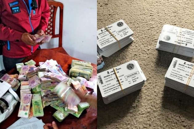 Previo al comienzo del partido entre River y Boca, la policía de Buenos Aires allanó la casa de un barra de River y encontró 300 entradas originales para el encuentro, más de 10 millones de pesos y 15 mil dólares.