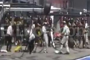 El incidente se produjo cuando Webber entró en boxes en la novena vuelta. El neumático derecho trasero de su Red Bull quedó mal ajustado y salió disparado a gran velocidad cuando el australiano arrancó para volver a la pista.