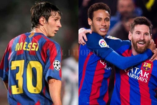 Gentileza Messi con la número 30 en sus comienzos en Barcelona y Messi junto a Neymar en su paso por el club catalán.