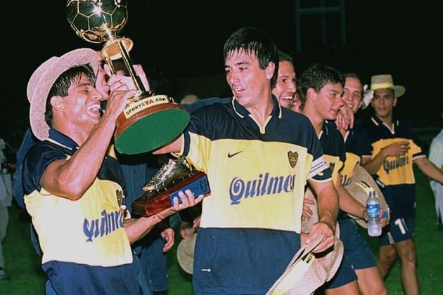 Archivo José Basualdo, en la imagen llevando un trofeo junto al ex Colón Hugo Ibarra, fue múltiple campeón en Boca. No tuvo piedad en su crítica a Benedetto, Nández y Cardona.Archivo José Basualdo, en la imagen llevando un trofeo junto al ex Colón Hugo Ibarra, fue múltiple campeón en Boca. No tuvo piedad en su crítica a Benedetto, Nández y Cardona.