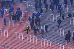 Mirá tambiénAgónico triunfo de Independiente Rivadavia ante Sarmiento en JunínLa tarde empezó complicada, ya que apedrearon los micros que trasladaban a los jugadores y delegación de San Lorenzo, con el saldo de dos allegados con heridas cortantes. El clima ya estaba caldeado antes de la entrada en calor. El hueco que quedó en la tribuna durante gran tramo del primer tiempo no era un buen presagio, y eso se confirmó tras el gol de Godoy Cruz: un grupo de cincuenta personas entró con cerámicas rotas de los baños del estadio y las empezaron a tirar al campo de juego, algo que demoró el compromiso. Luego, mientras Arasa revisaba el gol que le terminó anulando a Adam Bareiro por una polémica falta a Franco Petroli, se repitió este comportamiento. El entretiempo fue relativamente en paz, mientras que la explosión de los incidentes fue a los siete del segundo tiempo, con el avance de la policía sobre una tribuna que tenía como objetivo que el partido no se dispute con normalidad.